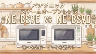 こんにちは、テクらくです。パナソニックのスチームオーブンレンジ「ビストロ」シリーズで、新型のNE-BS9Eと型落ちのNE-BS9Dを比べたい方は多いと思います。NE-BS9Eは2026年6月1日発売予定で、NE-BS9Dとの違いは「価格」「...