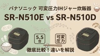 こんにちは、テクらくです。パナソニックの「おどり炊き」シリーズに、新モデル SR-N510E が登場しました。型落ちの SR-N510D との違いが気になっている方も多いのではないでしょうか。結論から言うと、2つの違いは主に 4つのポイント...