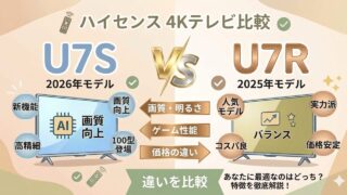 こんにちは、テクらくです。ハイセンスの4K MiniLEDテレビ「U7S」が2026年4月下旬にいよいよ発売されます。でも、こんな風に思っている方、多いんじゃないでしょうか。「新型U7Sが出たけど、型落ちのU7Rって今どのくらい安くなってる...