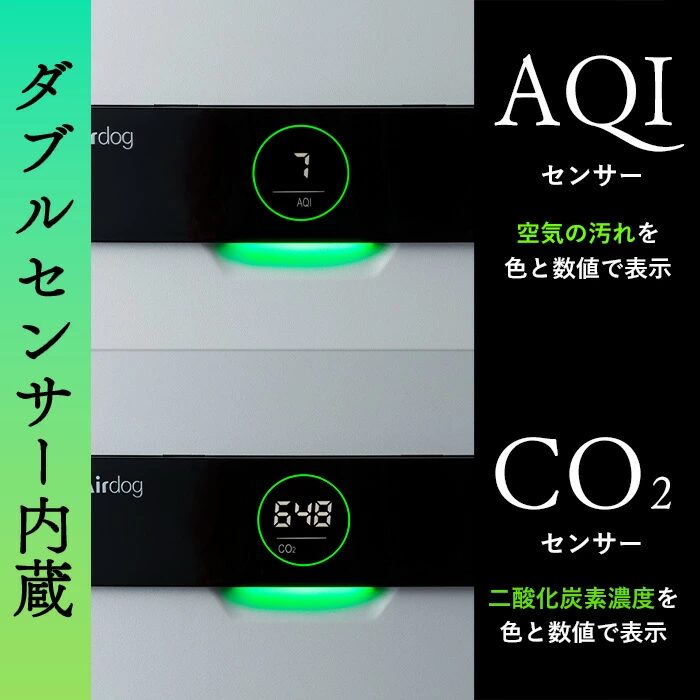 両モデルともAQI(空気質指数)センサーは搭載されているため、空気の汚れ具合を可視化できます。