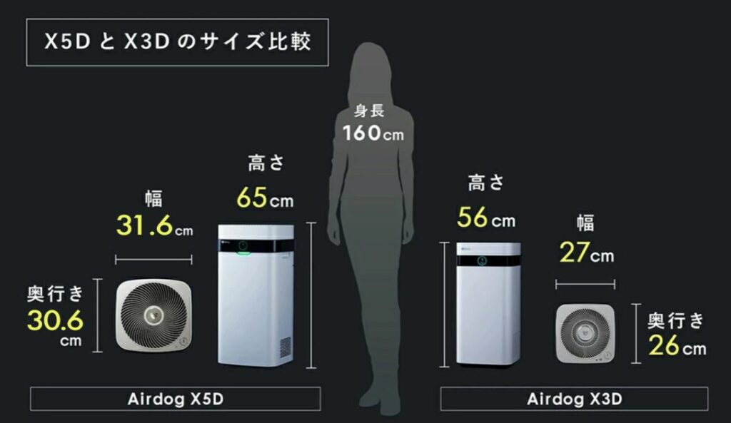 一方、X5Dは30分間で65㎡分(約24畳相当)の清浄空気を供給可能で、広いリビングやダイニングキッチン、オフィススペースなどで威力を発揮します。