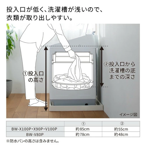 両機種は投入口が低い位置に設計されており、洗濯物が取り出しやすいデザインになっています。