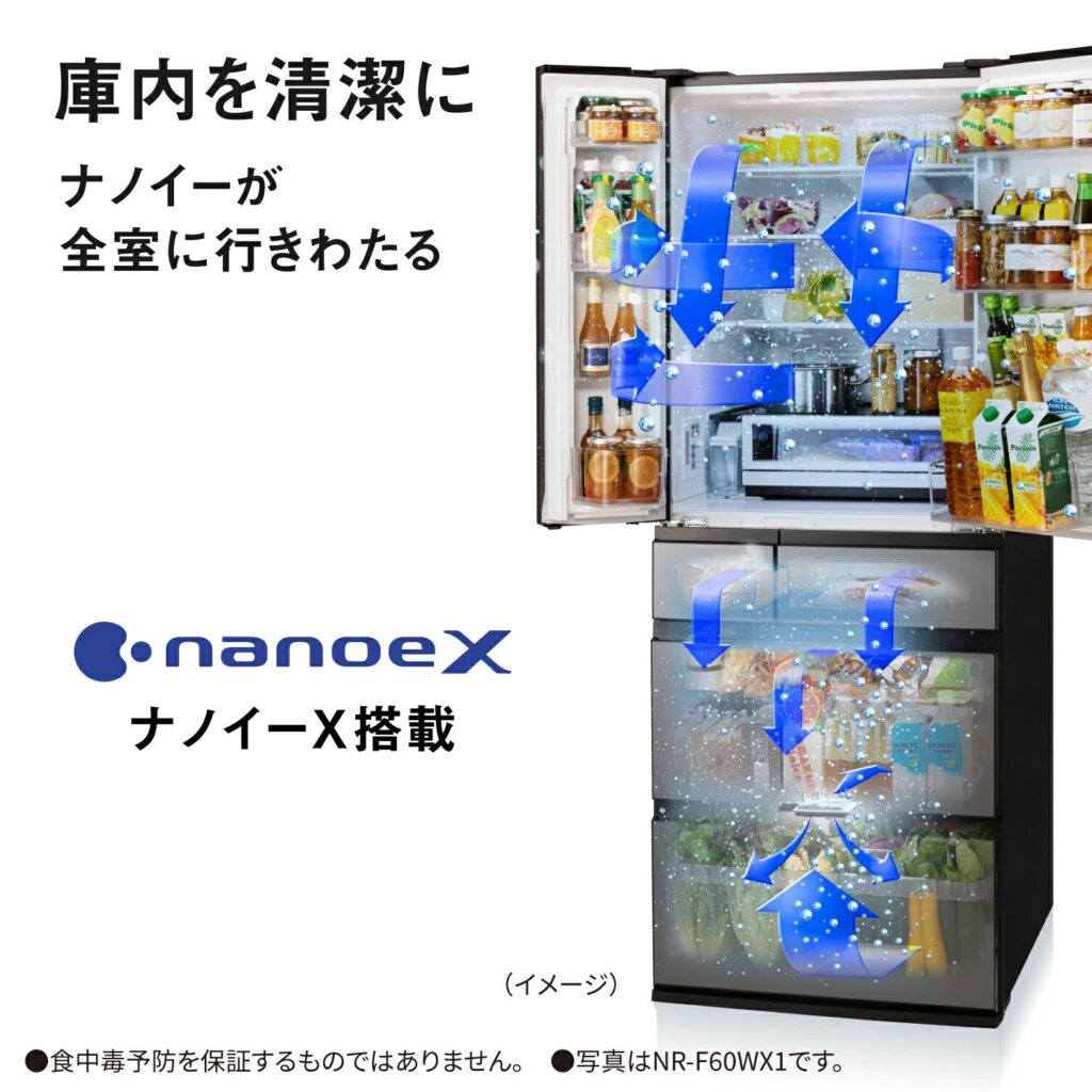 パナソニック独自の「ナノイーX」が冷蔵室・冷凍室・野菜室など全室にまんべんなく行き渡ります。