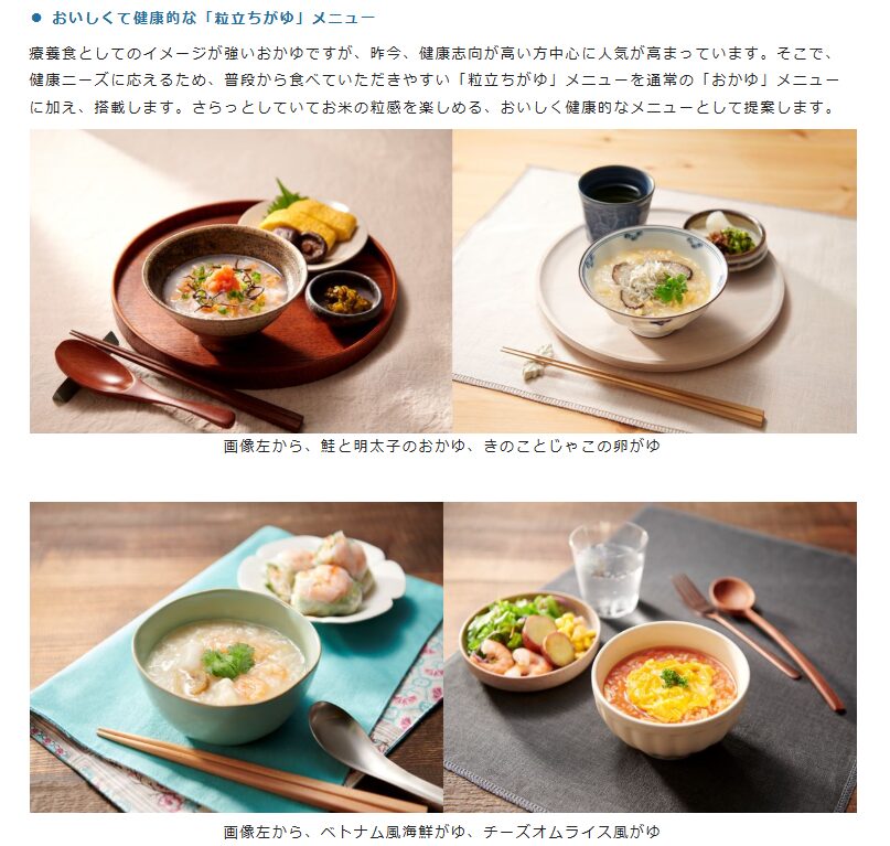 - 粒立ちがゆメニューの有無