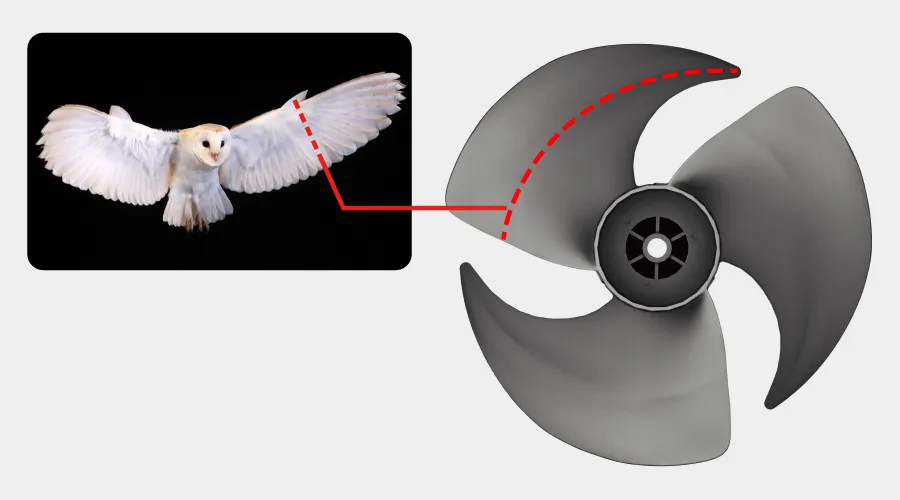 両機種ともに、フクロウの翼の構造を応用した羽根形状(ネイチャーテクノロジー)を採用しています。