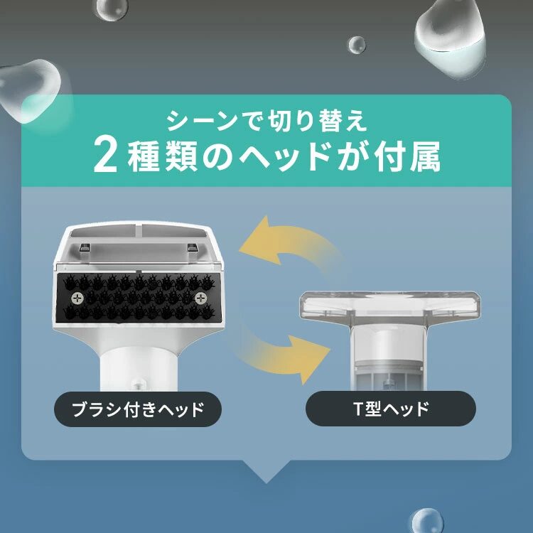 ブラシ付きヘッドは、落ちにくい汚れをこすり落とすのに便利で、長年の染みや頑固な汚れにも対応できます。