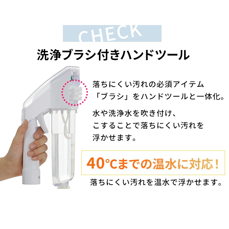 • ブラシ付きヘッドで落ちにくい汚れも取りやすい。