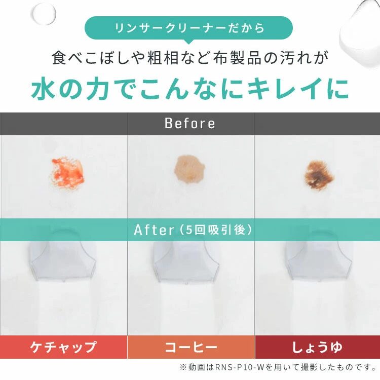 RNS-300は、清水タンク0.3Lのコンパクトサイズで、小さな汚れをこまめに掃除したい方、できるだけコストを抑えたい方、シンプルな機能で十分な方におすすめです。
