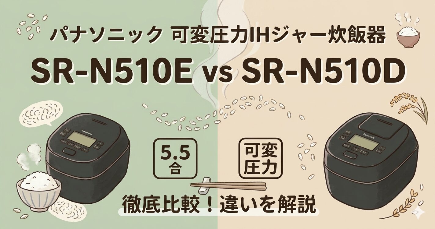 SR-N510EとSR-N510Dの違いは 省エネ性能・甘みの参考数値・おこわコースの有無・価格差 の4点に集約されます。