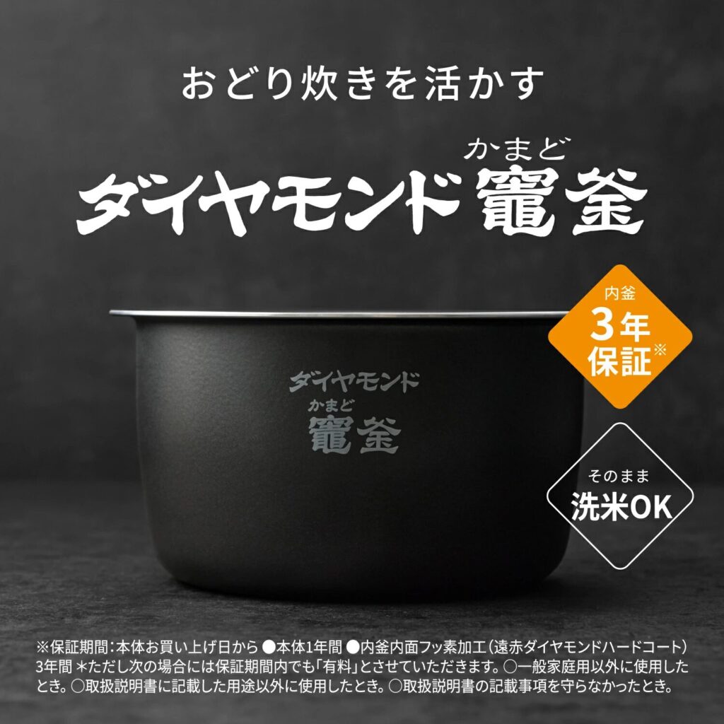 | 内釜 | ダイヤモンド竈釜(3年保証) | ダイヤモンド竈釜(3年保証) |
