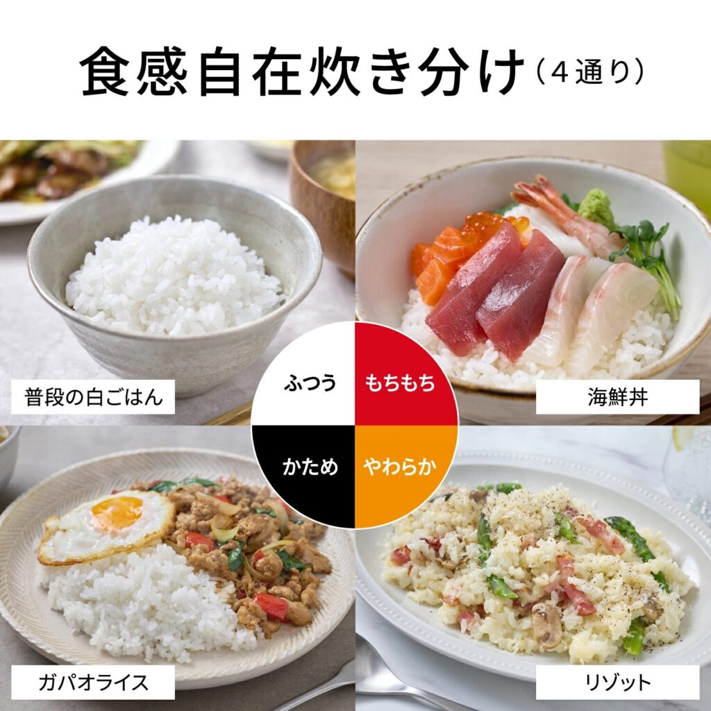 共通機能だけでも十分すぎるほどの充実ぶり。おどり炊きの甘み約14〜15%アップ・粘り約4%アップ(当社比)は、どちらを買っても手に入る実力です。